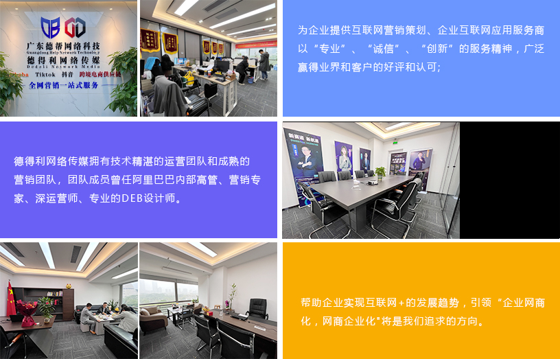 廣東德得利網絡傳媒有限公司是一家:為企業提供互聯網新媒體營銷策劃、企業互聯網新媒體應用服務商;以“專業、專注、專一、誠信、激情、敬業的服務精神,廣泛贏得業界和客戶的好評及認可;這個時代,誰運用好互聯網+新媒體誰將搶占先機;擁有技術精湛的運營團隊和成熟的營銷團隊,團隊成員曾任阿里巴巴內部高管、營銷專家、資深運營師、專業的DEB設計師和抖音內部運營操盤手